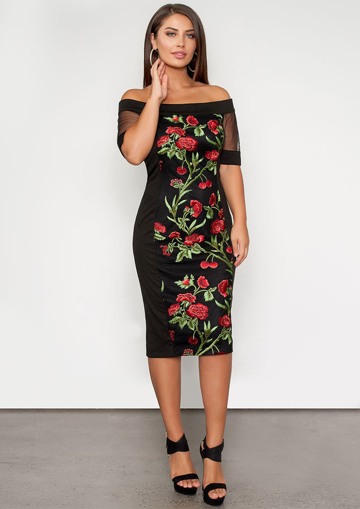 V514S19 | Off Shoulder Embroided Dress | Very Very Clothing