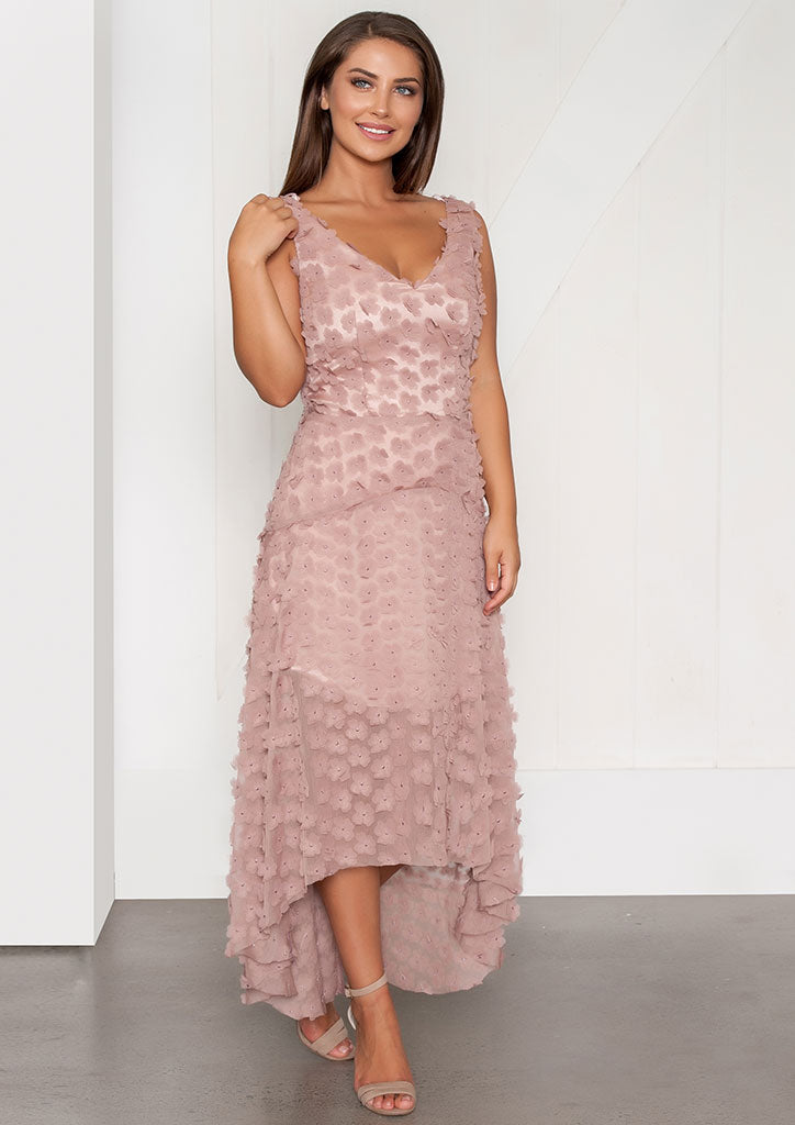 V556S19 Mocha | Floral Textured Dress | Very Very Clothing