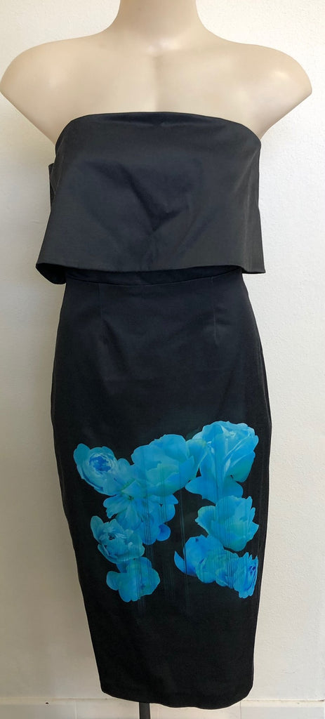 Lined Off The Shoulder Dress With Blue Flower Print