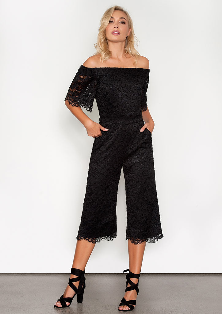 V529S19 Black | Lace Off Shoulder Jumpsuit | Very Very