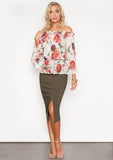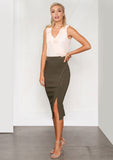 V530S19 Khaki | Skirt with Split | Very Very Clothing