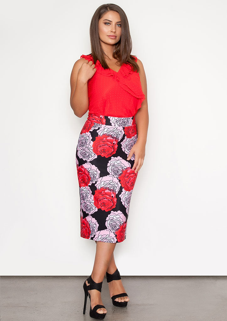 V545S19 | Pull on Floral Print Skirt | Very Very Clothing