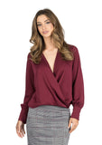TALISHA 817 V-Neck Long Sleeve Top in Burgundy | Very Very Clothing
