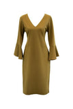 DEVON 882 Khaki V-Neck Bell Sleeve Dress | Very Very Clothing