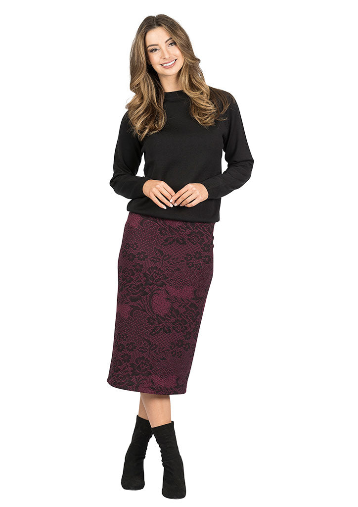 SMIT 807 Straight Skirt in Burgundy / Black | Very Very Clothing